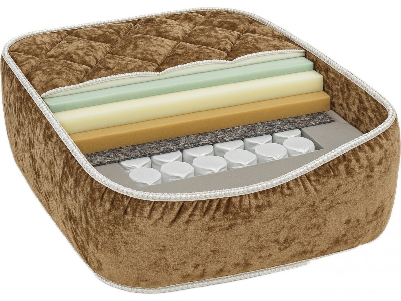 Elegant brown velvet fabric with stitched 2 cm soft foam (32 Dn) — offering plush comfort, anatomical adaptation, and stable orthopedic support.